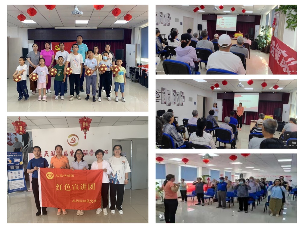 体育教学部党总支深入共建社区开展志愿服务活动 为深入开展习近平新时代中国特色社会主义主题教育,激发广大教工党员为民服务办实事的宗旨意识。日前,体育部党总支所属第一教师党支部深入龙天园社区开展“走基层 送健康”全民健身志愿行活动,为社区居民讲党课、开展健康锻炼指导咨询及现场运动指导,深受社区居民欢迎。 体育部第一教师党支部书记高伟老师,结合个人在学习党的二十大报告和总书记系列讲话精神中的体会,从体育工作出发,围绕《“体育强国”“健康中国”与我们息息相关》这一主题,面向社区居民讲授党课。高老师系统梳理了“健康中国”“体育强国”思想发展的历史脉络,详细讲述了国家实施以人民健康为中心,推进健康中国建设的思路和举措。最后,针对“体育强国”“健康中国”如何从我做起,与现场居民互动,指导居民结合个人身体状况科学合理健身,不断增强体质。